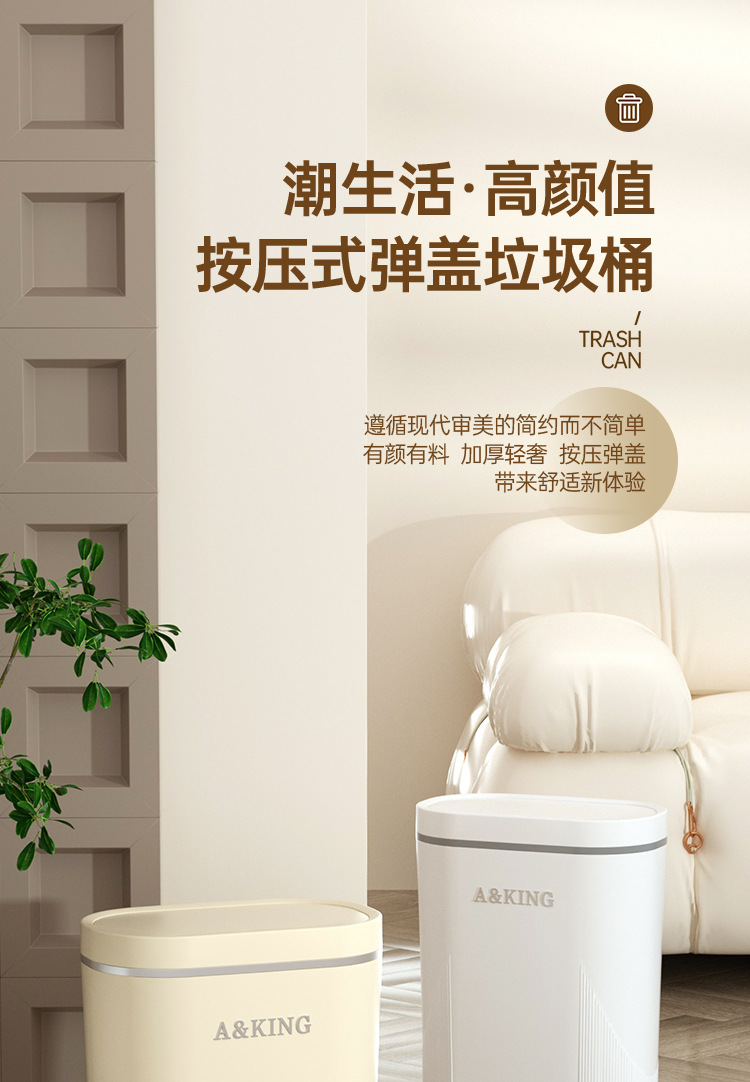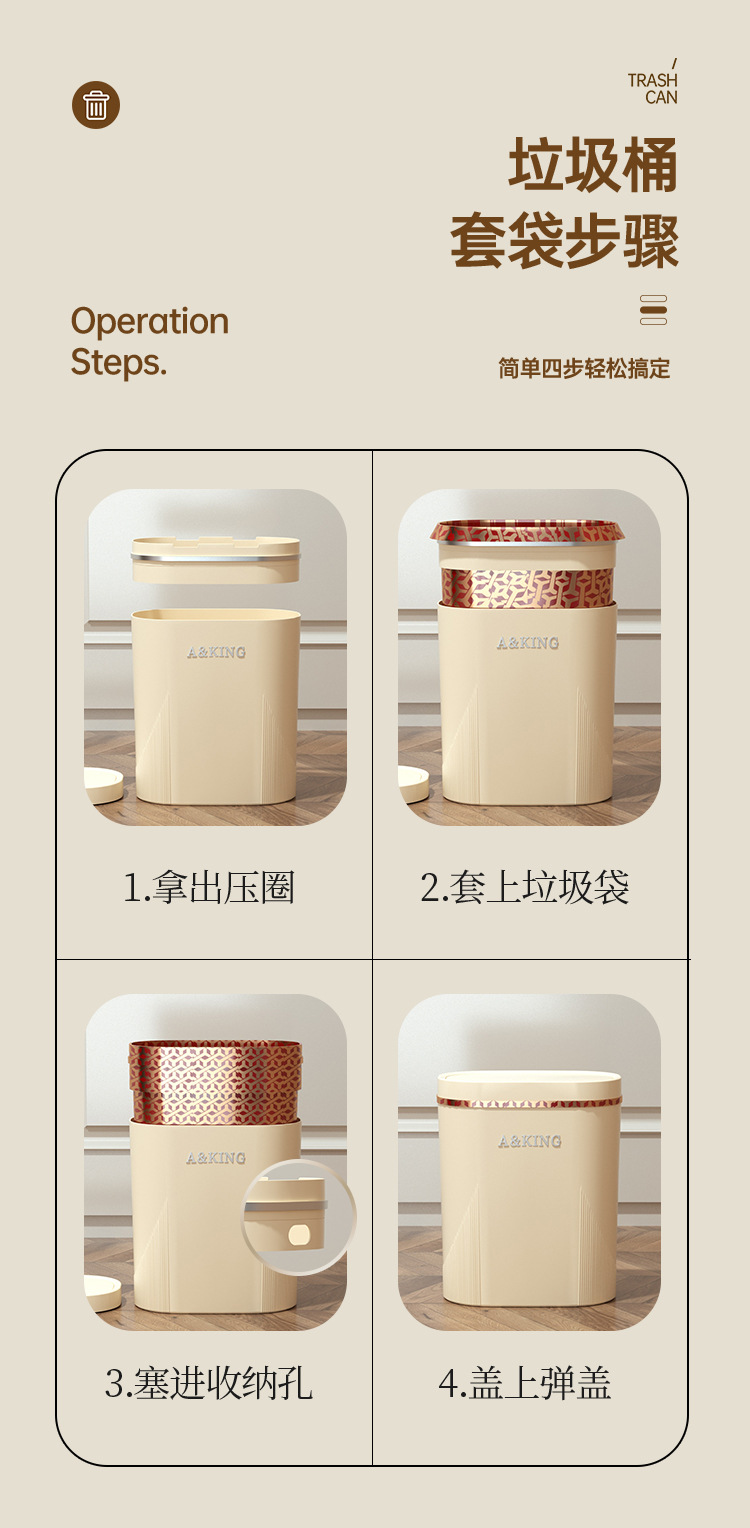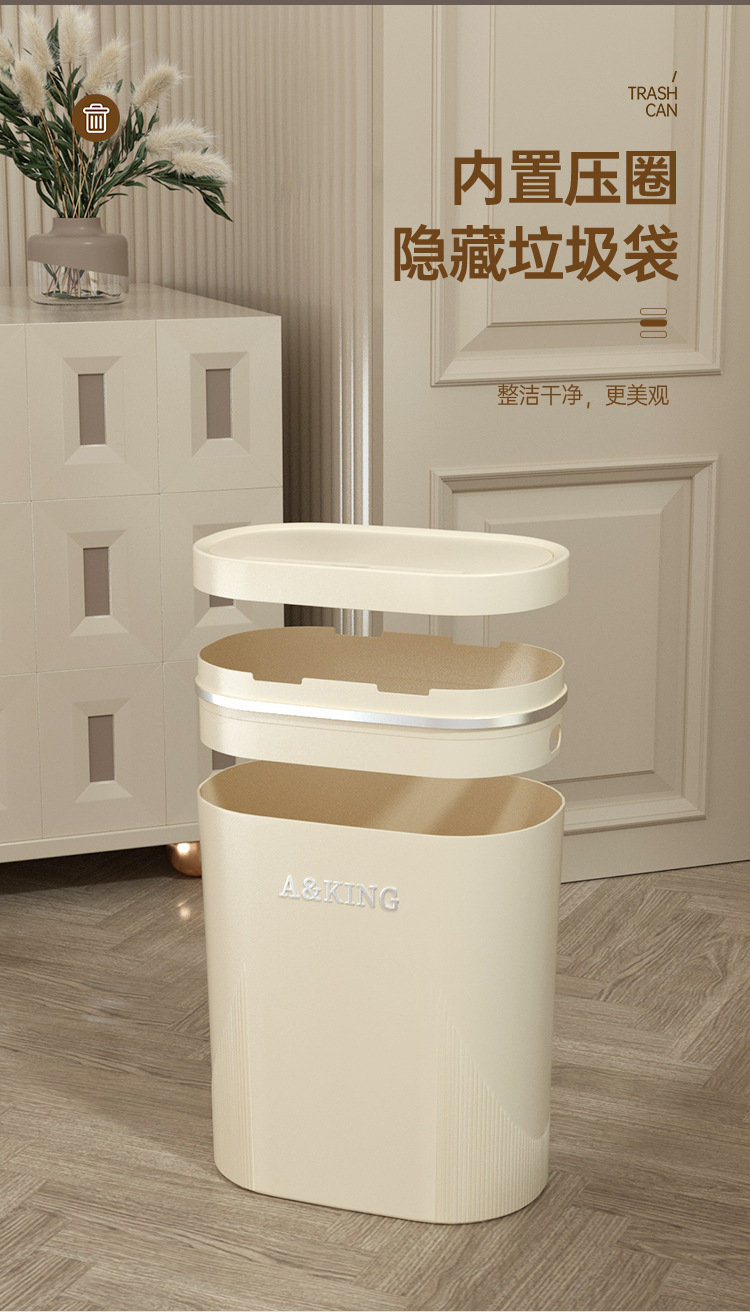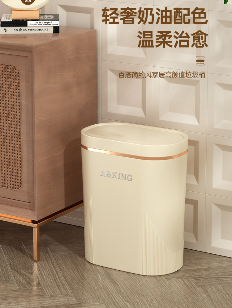 Basura de presión de alto valor facial doméstico ligero lujo baño cocina crema viento sala de estar dormitorio hendidura cesta de basura