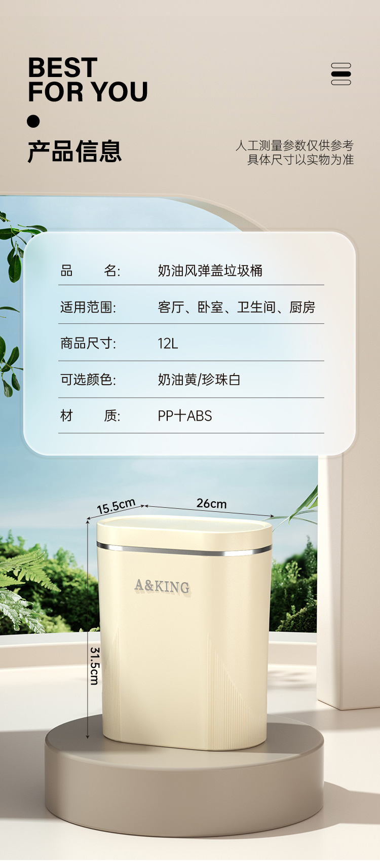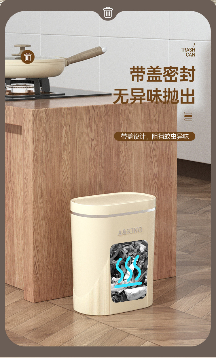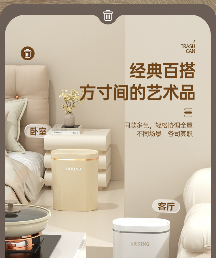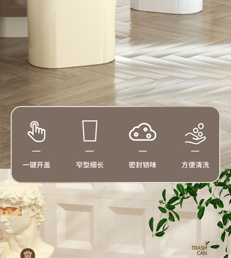 Basura de presión de alto valor facial doméstico ligero lujo baño cocina crema viento sala de estar dormitorio hendidura cesta de basura