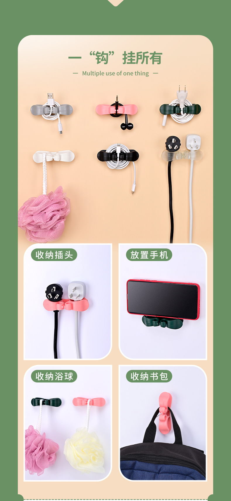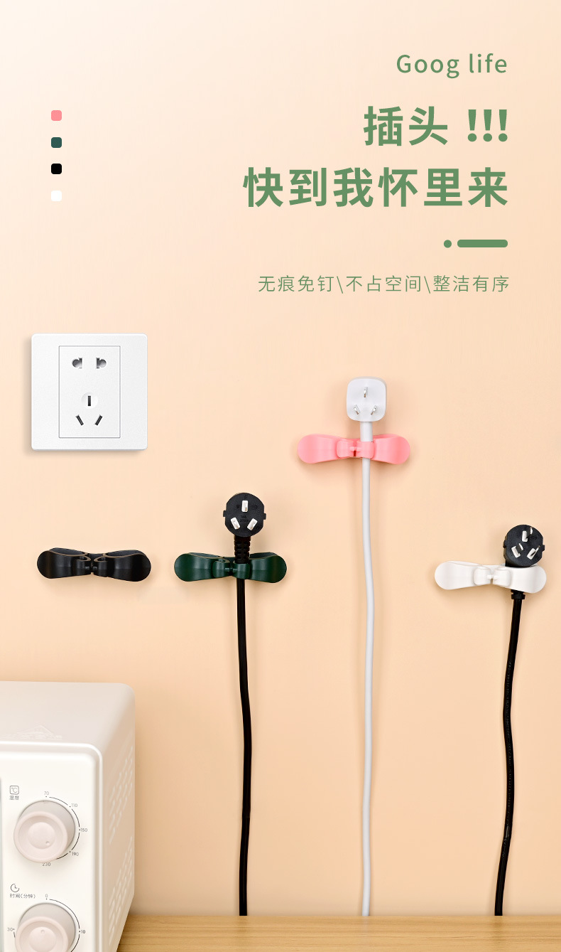 Alambre de almacenamiento de cocina titular de alambre clip de alambre hogar cable organizador pared pegatina Punch-libre energía Winder