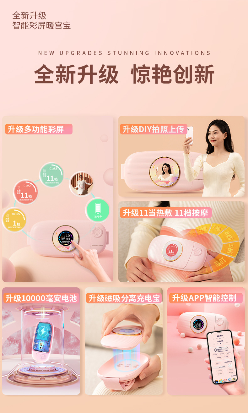 2023 nuevo producto inteligente pantalla de color con cinturón de masaje menstrual para niñas tía abdomen de compresa caliente para proteger la cintura con cinturón caliente