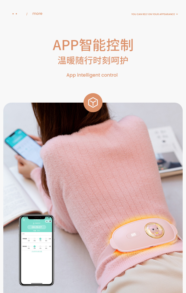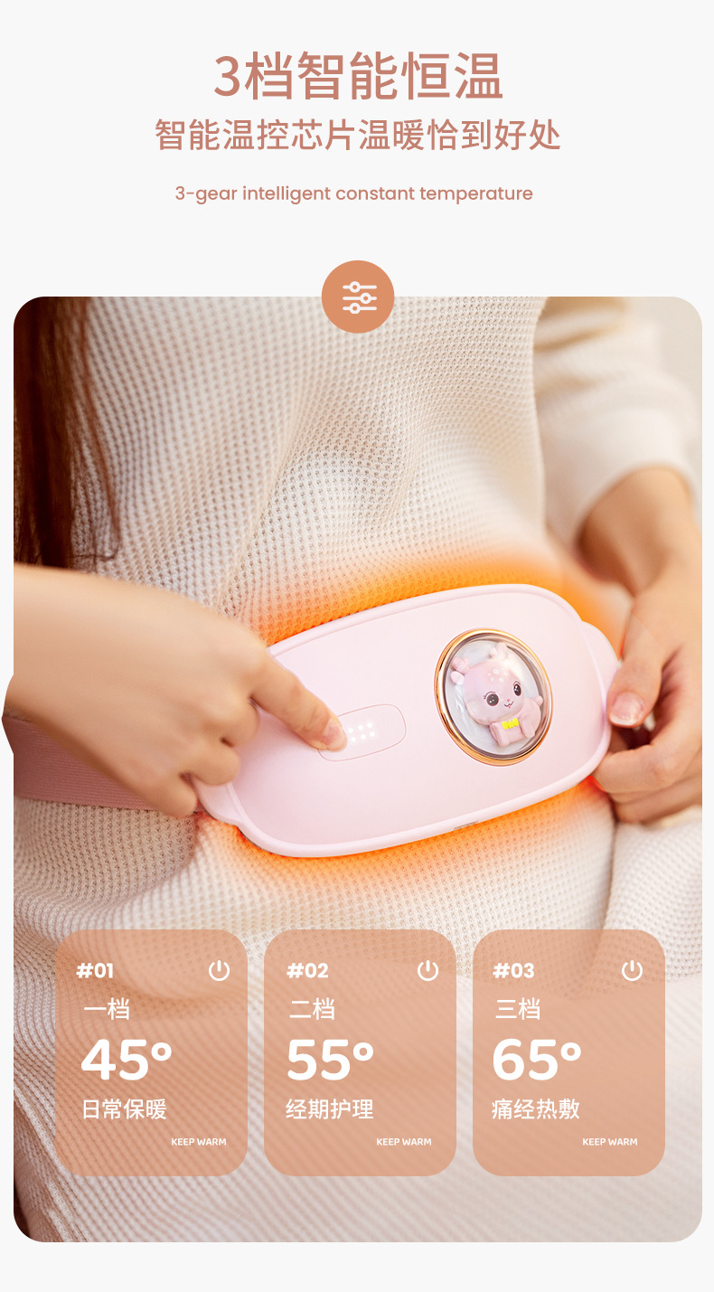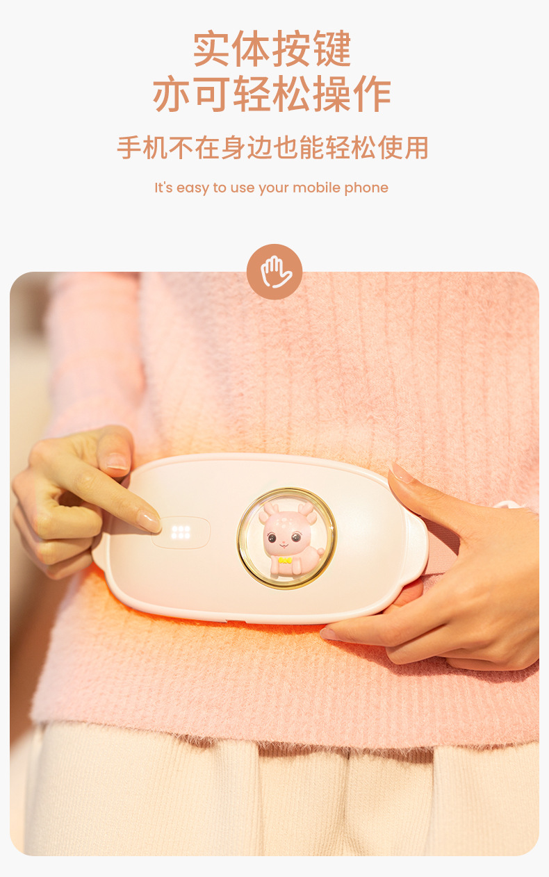 Bluetooth APP lindo mascota caliente Palacio cinturón chica tía dolor cálido bebé período menstrual dolor vientre calefacción masaje protección