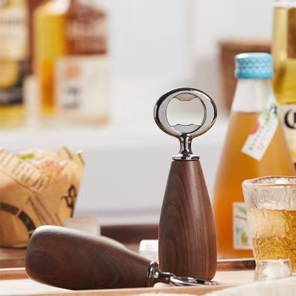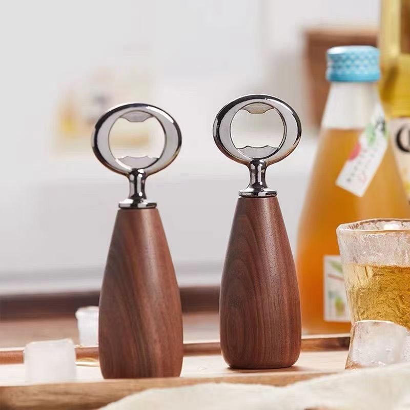 Botella de acero inoxidable de madera maciza de nogal negro, abrebotellas de cerveza, abrebotellas de refrescos de bebidas, destornillador de madera