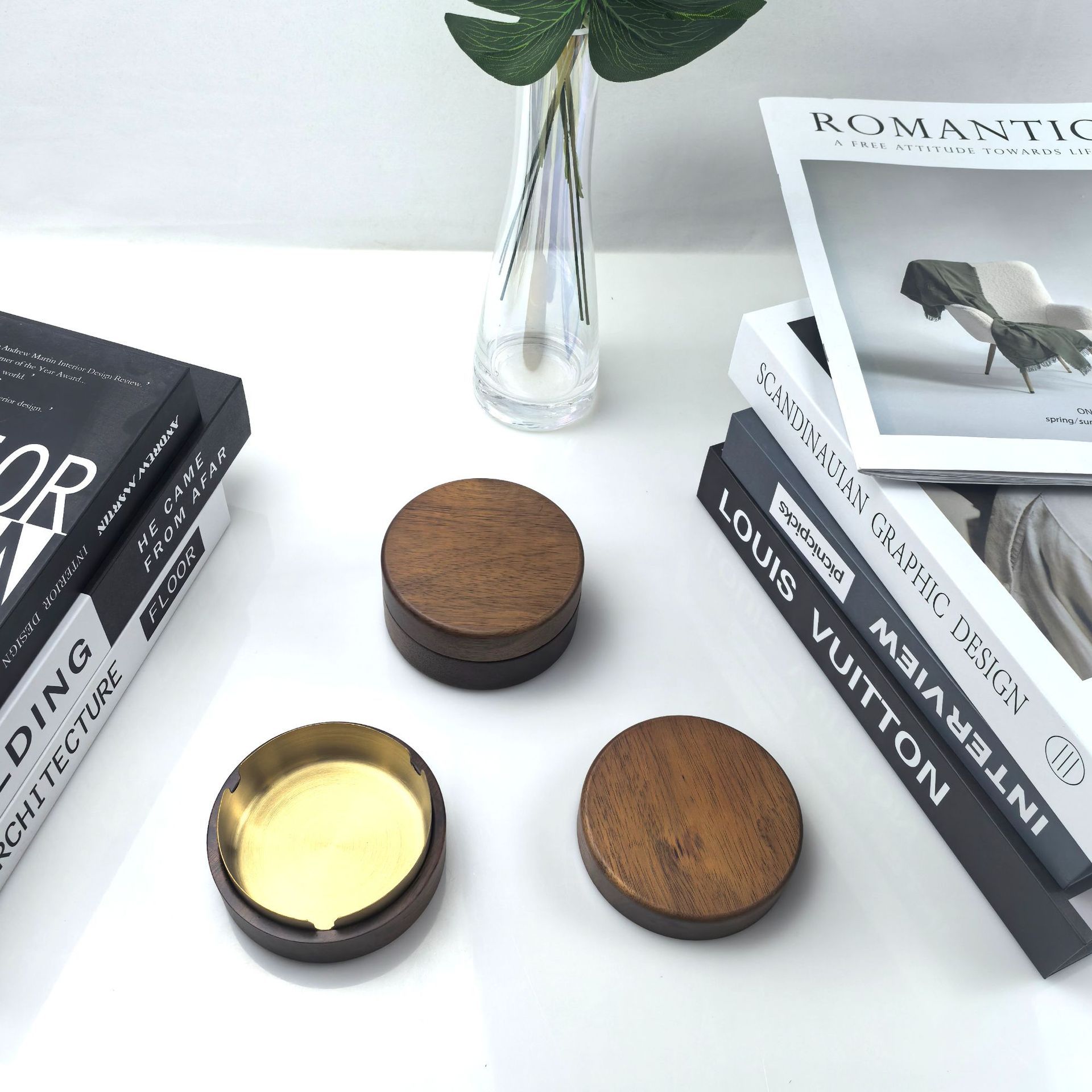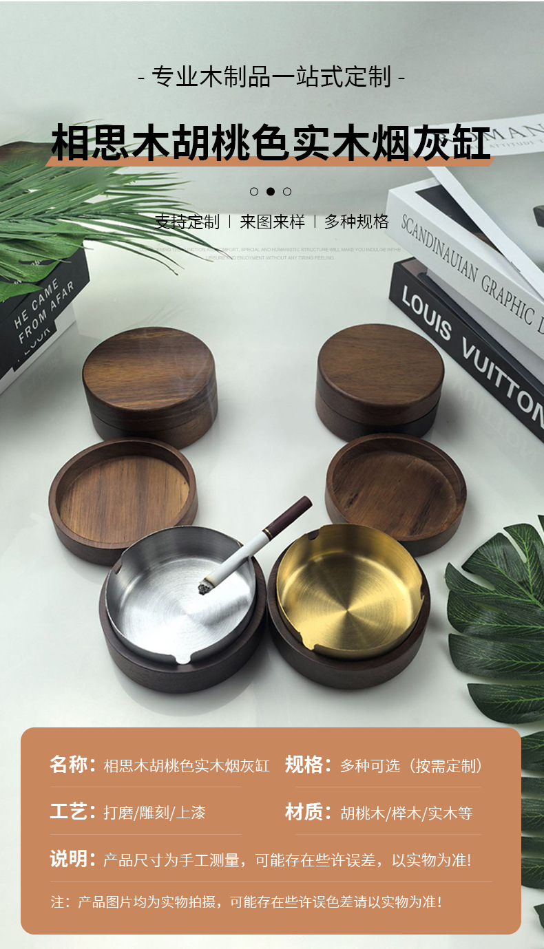 Cenicero de madera maciza de color nogal de madera de acacia sala de estar para el hogar con cubierta de madera a prueba de polvo volador oficina creativa estilo redondo de madera
