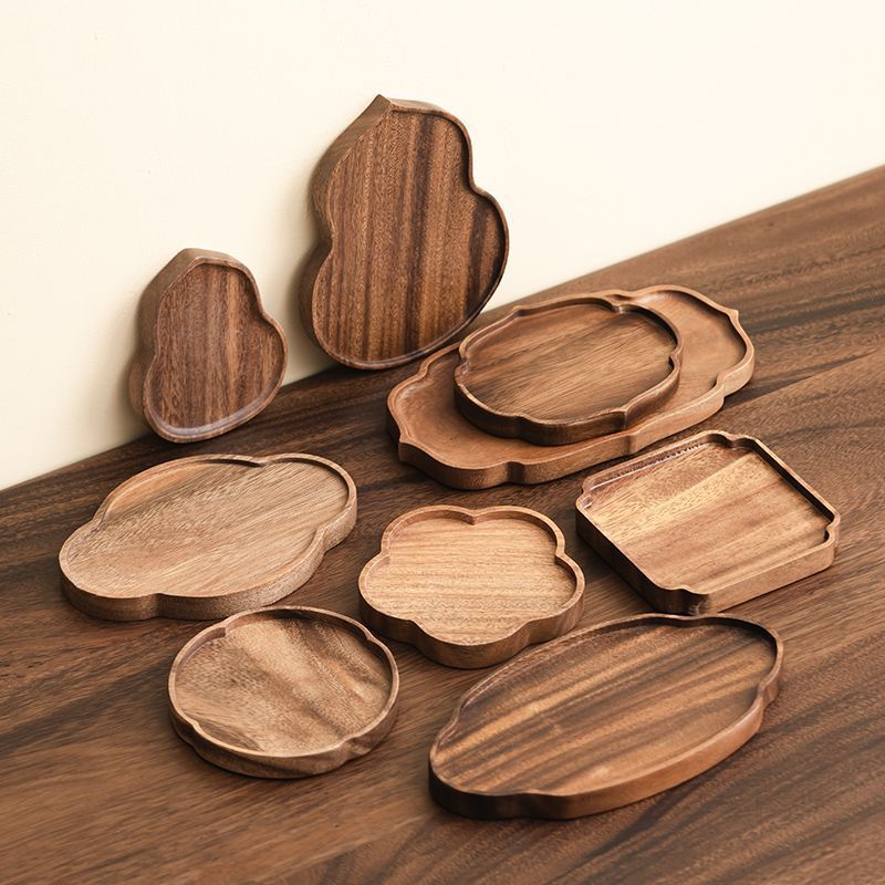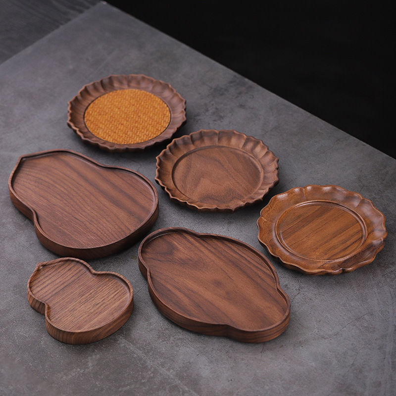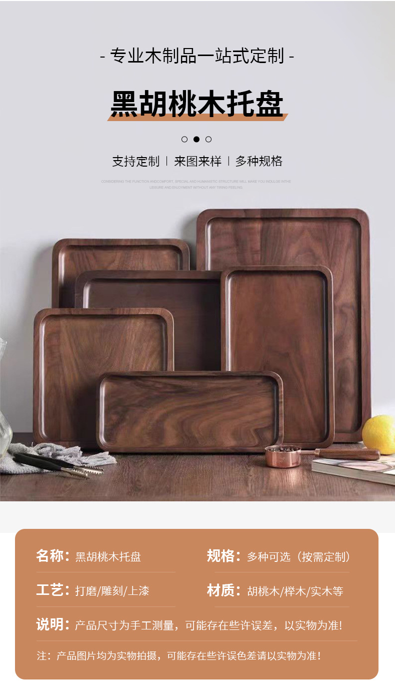 Bandeja de madera de nogal negro, bandeja de comedor de madera maciza de especificaciones múltiples, bandeja de té japonesa, café de dim sum para hotel, bandeja pequeña de madera de haya exquisita