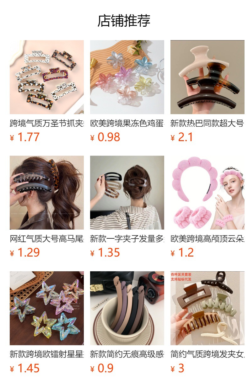 新款跨境软硅胶鲨鱼夹大号飘带发夹女方块夹龙骨夹后脑勺发饰批发