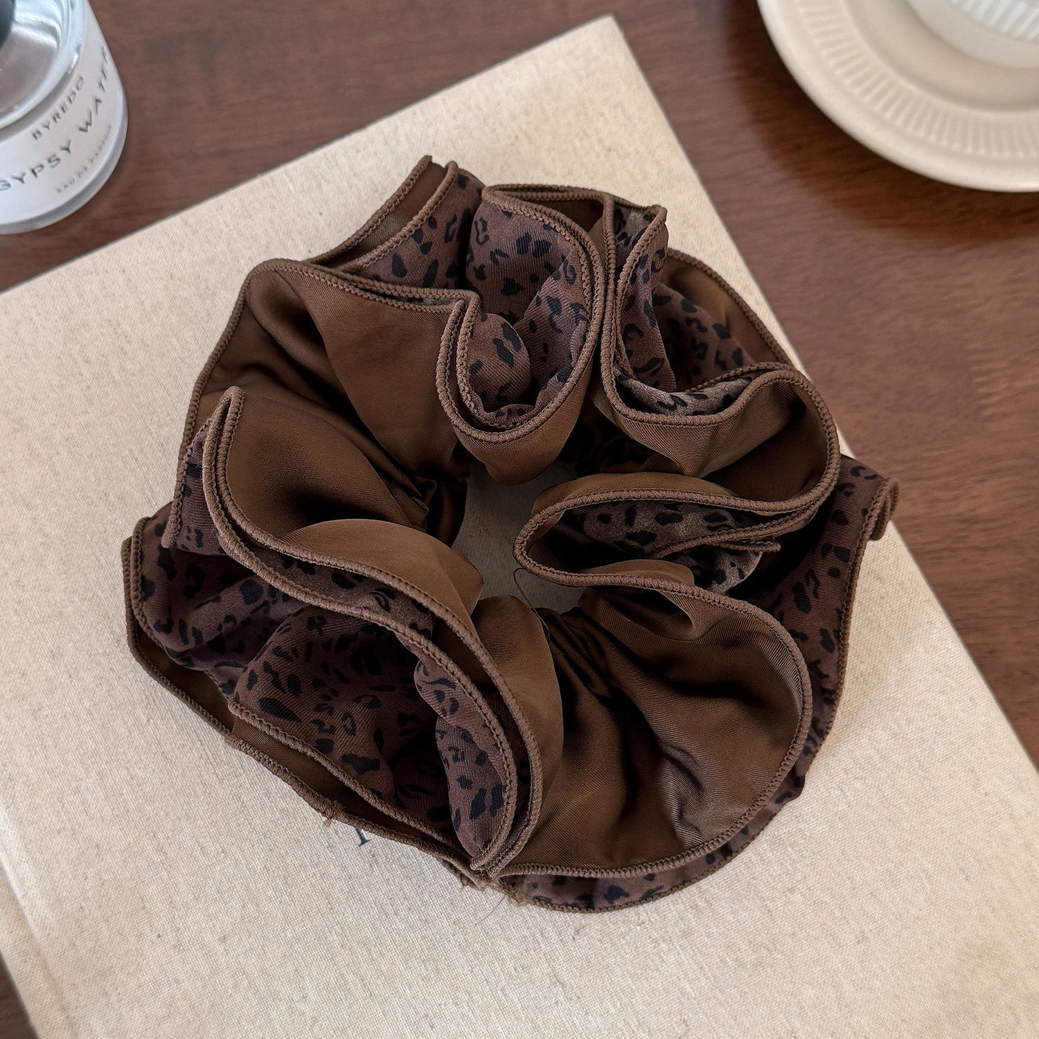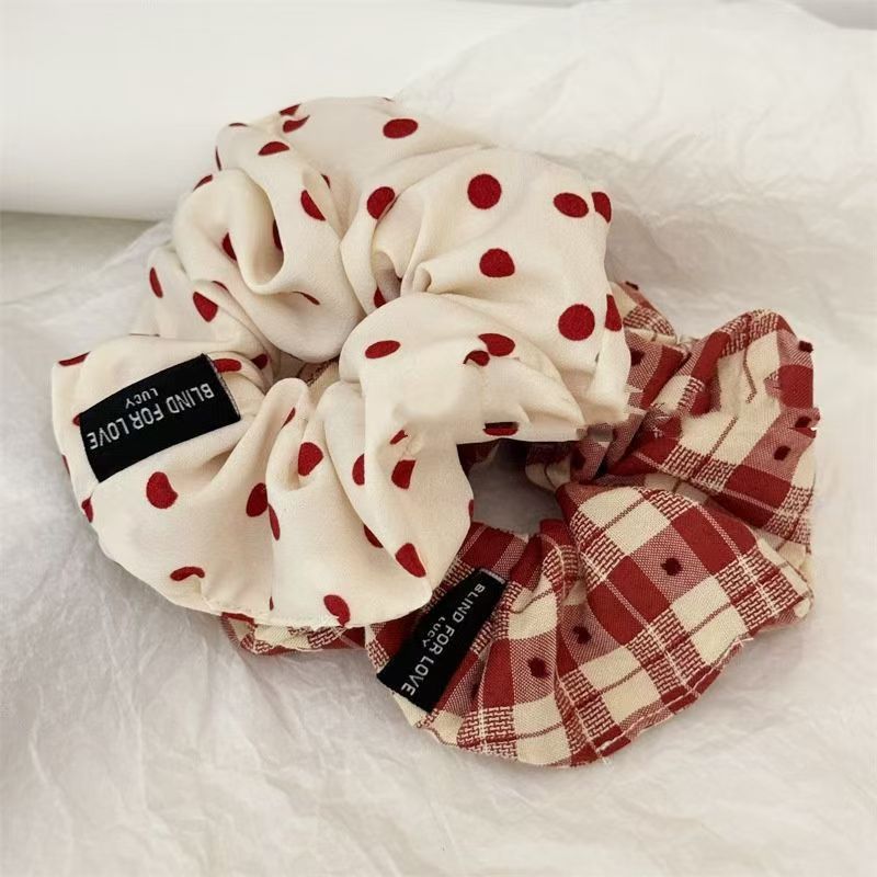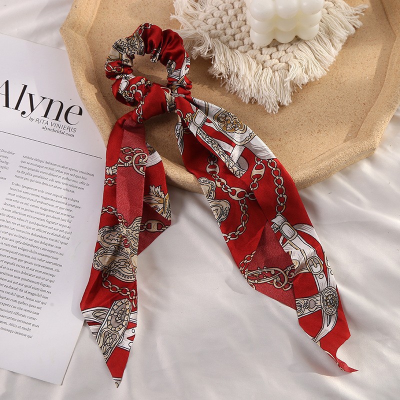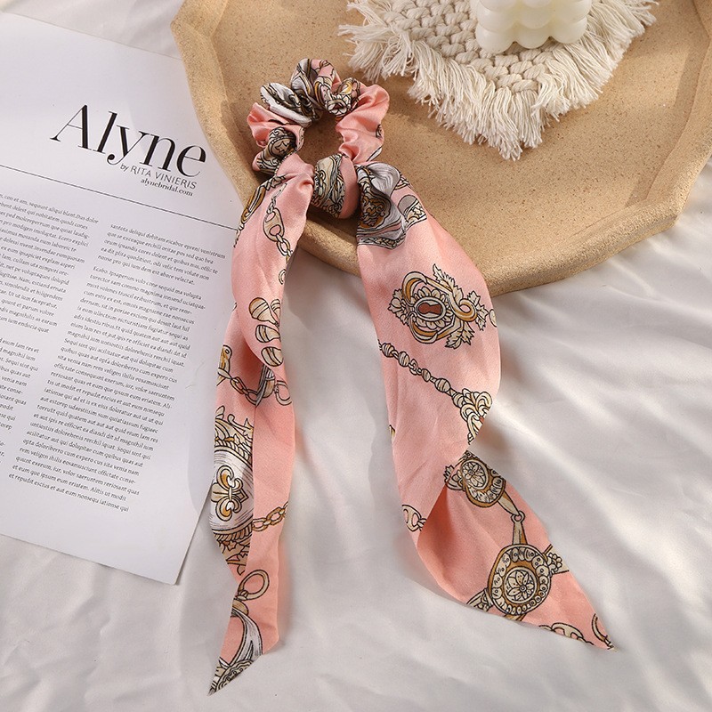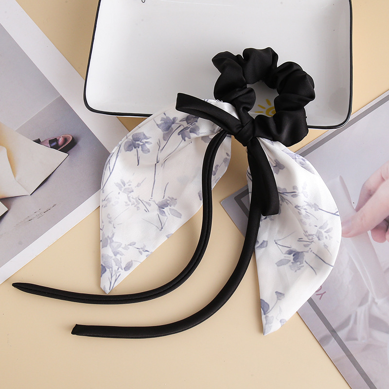 新款高级缎面印花蝴蝶结飘带大肠发圈国风气质中式后脑勺马尾头绳